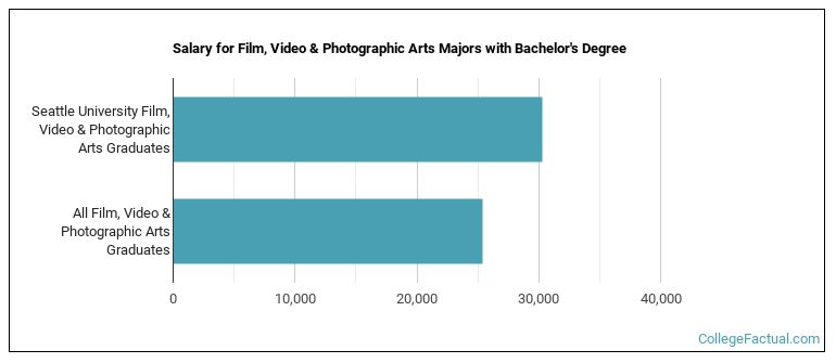 Film majors who earn their bachelor's degree from Seattle U go on to jobs where they make a median salary of $30,256 a year. This is great news for graduates of the program, since this figure is higher than the national average of $25,425 for all film bachelor's degree recipients.