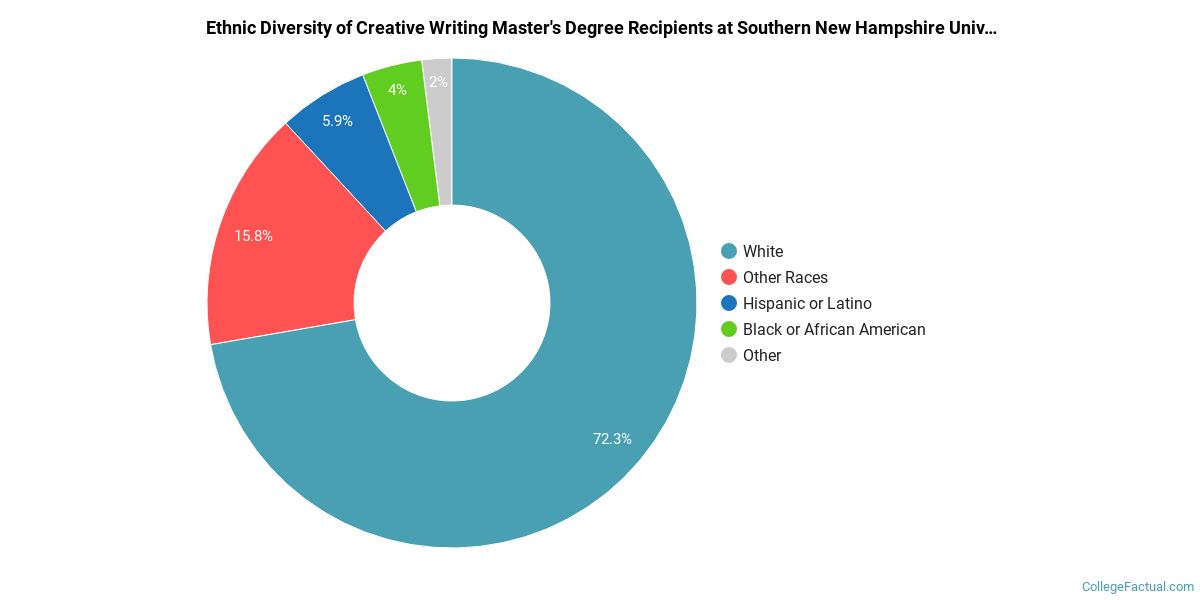 The following table and chart show the ethnic background for students who recently graduated from Southern New Hampshire University with a master's in creative writing.