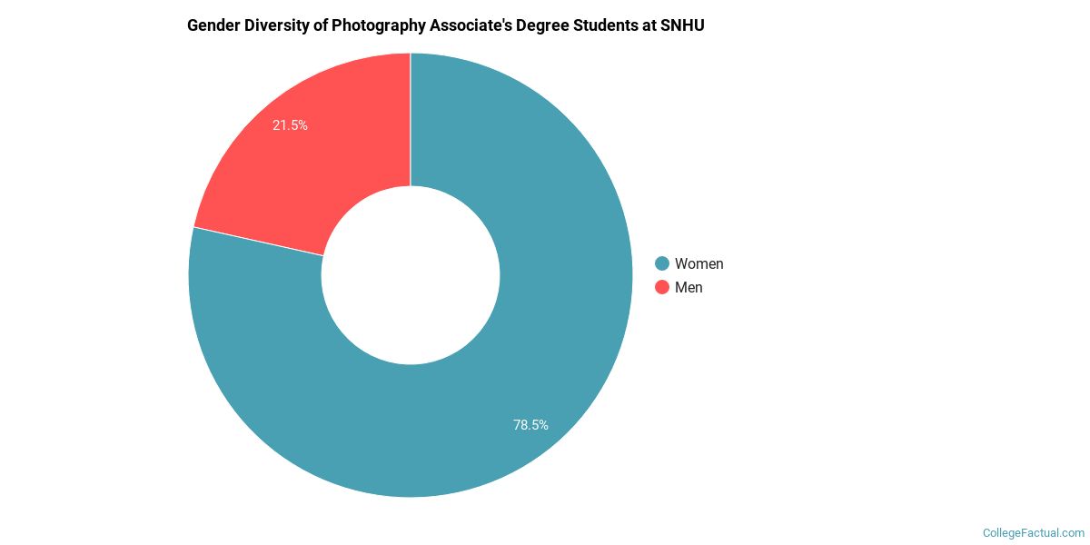 Of the 79 students who graduated with a Associate’s in photography from SNHU in 2021, 22% were men and 78% were women.
