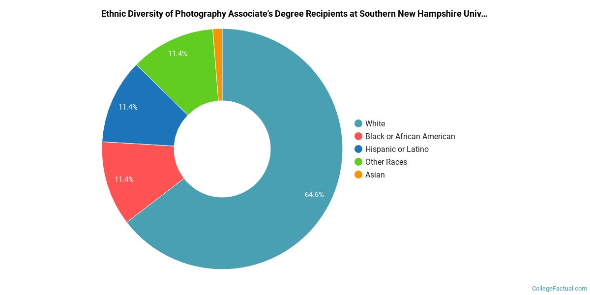 The following table and chart show the ethnic background for students who recently graduated from Southern New Hampshire University with a associate's in photography.