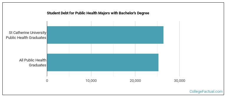 While getting their bachelor's degree at St. Kate's, public health students borrow a median amount of $26,412 in student loans. This is higher than the the typical median of $25,250 for all public health majors across the country.