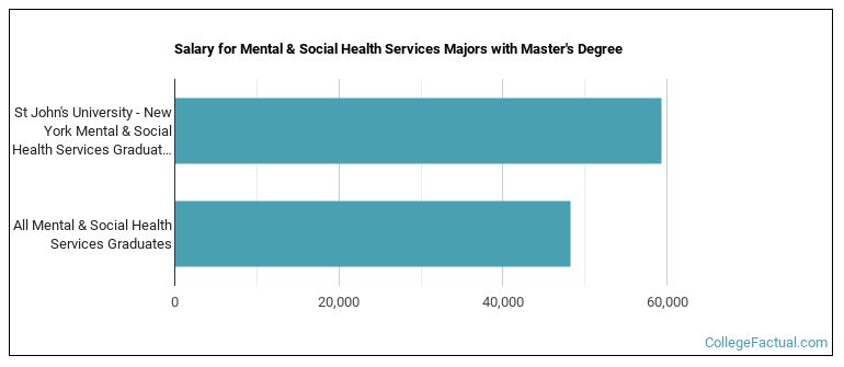 Mental Health Services majors graduating with a master's degree from STJ make a median salary of $59,299 a year. This is a better than average outcome since the median salary for all mental health services graduates with a master's is $48,197.