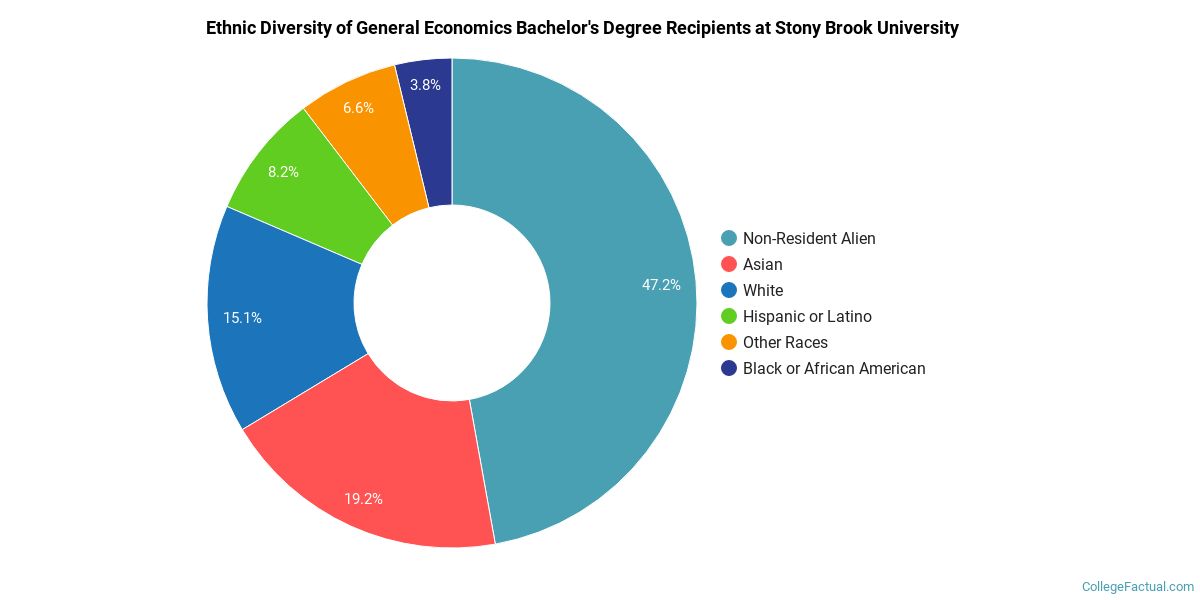 During the 2020-2021 academic year, 6 students graduated with a bachelor's degree in general economics from SUNY Stony Brook. About 50% were men and 50% were women.