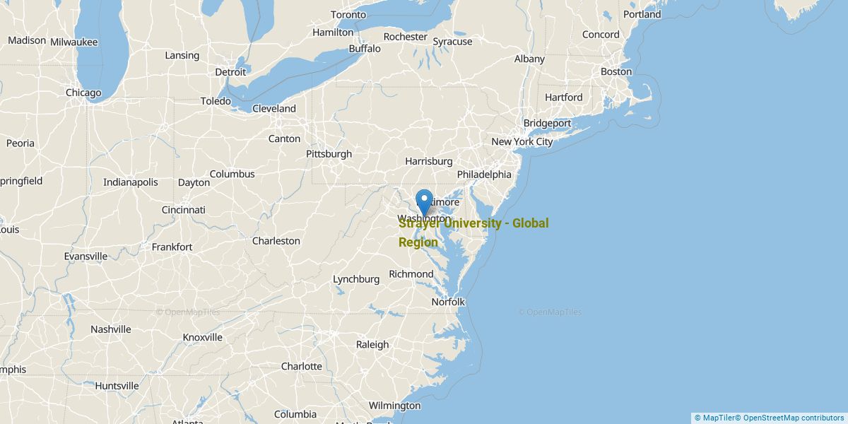 The map below shows where Strayer University - Global Region is located and can give you an idea of the surrounding cities and towns. Is the campus close enough to home for your liking? You want to also make sure you will like the around the campus, too.
