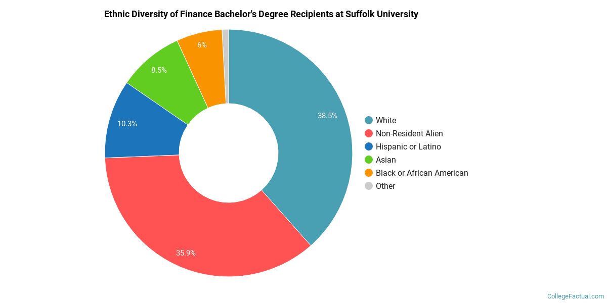The following table and chart show the ethnic background for students who recently graduated from Suffolk University with a bachelor's in finance.