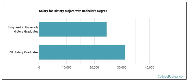The median salary of history students who receive their bachelor's degree at Binghamton University is $24,498. This is less than $31,217, which is the national median of all history majors in the nation who earn bachelor's degrees.