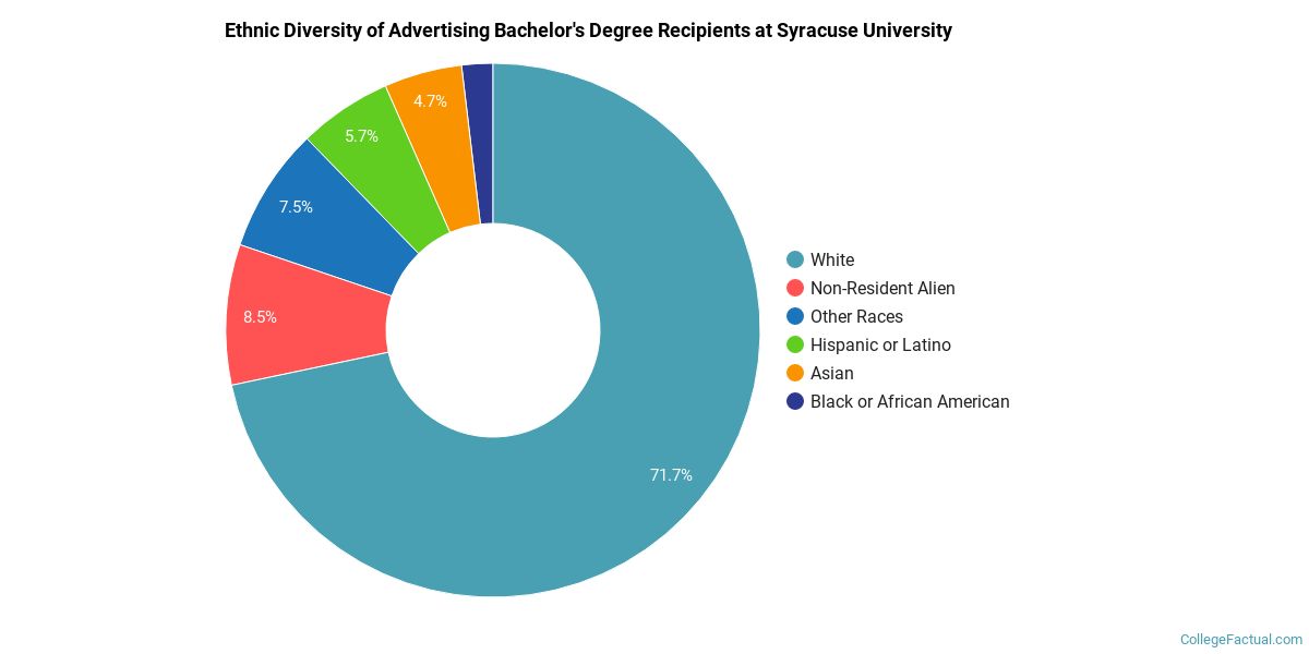 During the 2020-2021 academic year, 17 students graduated with a bachelor's degree in advertising from Syracuse. About 18% were men and 82% were women.