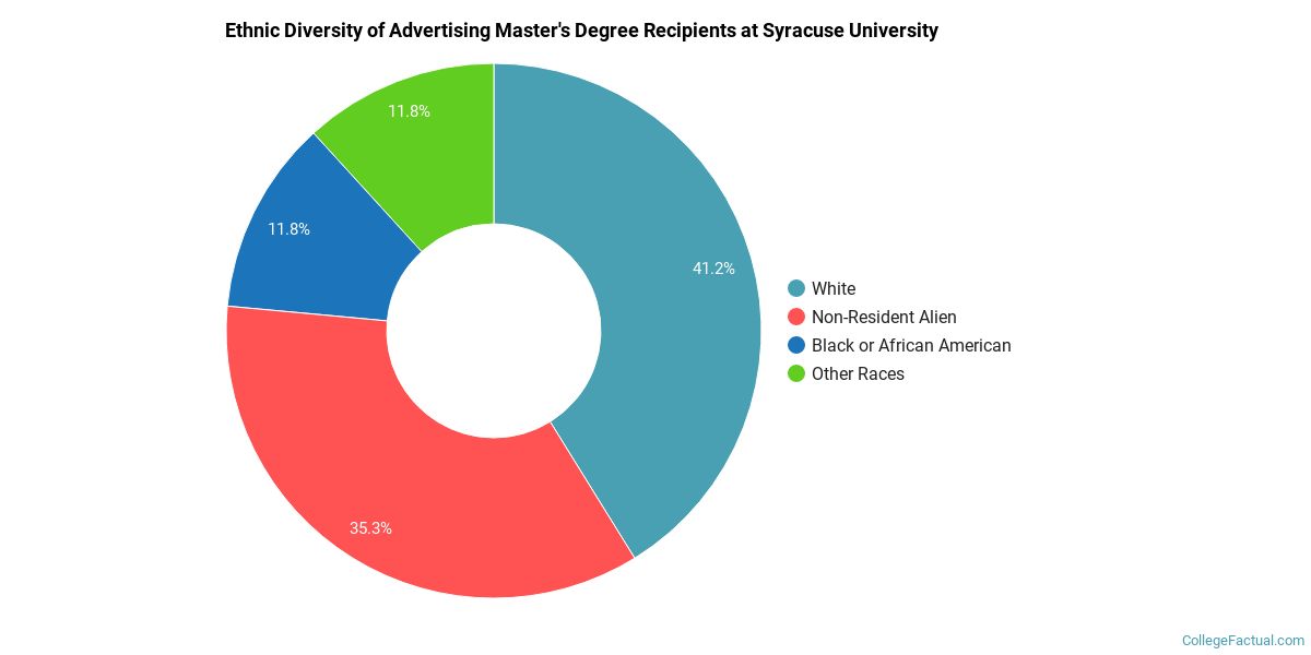 In 2021, 17 students received their master’s degree in advertising from Syracuse. This makes it the #6 most popular school for advertising master’s degree candidates in the country.