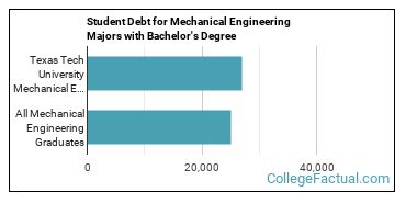 While getting their bachelor's degree at Texas Tech, me students borrow a median amount of $32,610 in student loans. This is higher than the the typical median of $30,590 for all me majors across the country.
