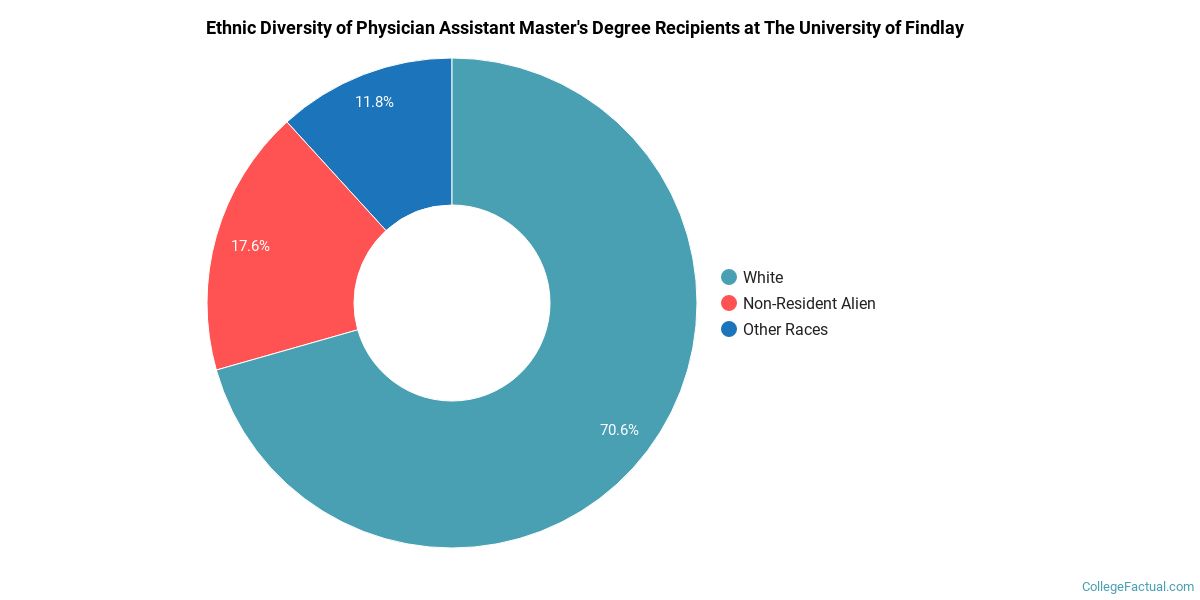 The following table and chart show the ethnic background for students who recently graduated from The University of Findlay with a master's in physician assistant.