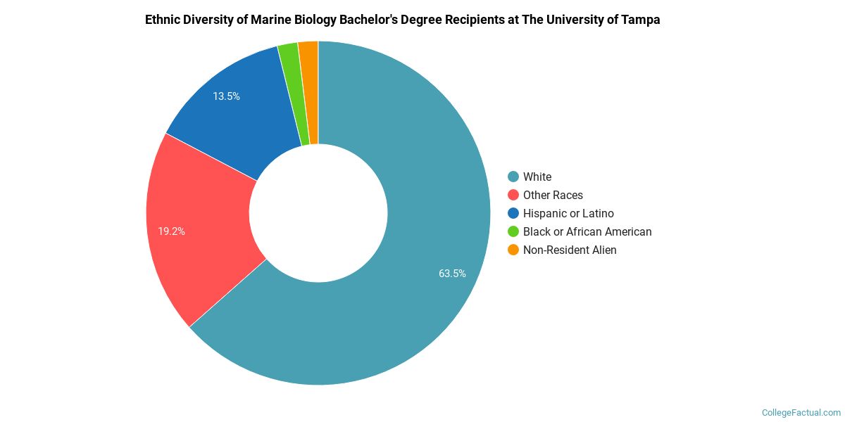 During the 2020-2021 academic year, The University of Tampa handed out 52 bachelor's degrees in marine biology. This is an increase of 13% over the previous year when 46 degrees were handed out.