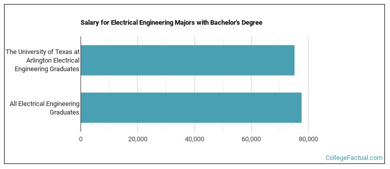 EE majors who earn their bachelor's degree from UT Arlington go on to jobs where they make a median salary of $75,116 a year. Unfortunately, this is lower than the national average of $77,687 for all ee students.