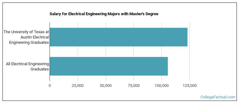 Graduates of the master's ee program at UT Austin make a median salary of $122,914. This is a better than average outcome since the median salary for all ee graduates with a master's is $105,380.