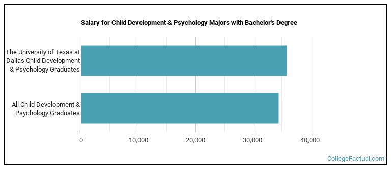 Child Development majors who earn their bachelor's degree from UT Dallas go on to jobs where they make a median salary of $35,982 a year. This is higher than $34,585, which is the national median for all child development bachelor's degree recipients.