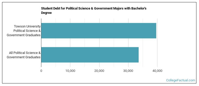 While getting their bachelor's degree at Towson, political science students borrow a median amount of $39,687 in student loans. This is higher than the the typical median of $33,583 for all political science majors across the country.