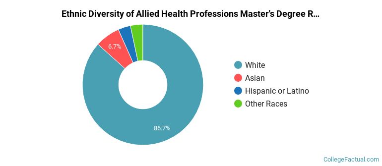 For the most recent academic year available, 27% of allied health master's degrees went to men and 73% went to women.