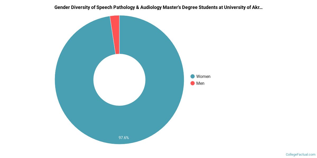 In the 2020-2021 academic year, 42 students earned a master's degree in audiology from University of Akron Main Campus. About 98% of these graduates were women and the other 2% were men.