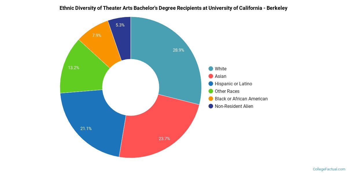 The following table and chart show the ethnic background for students who recently graduated from University of California - Berkeley with a bachelor's in theater.