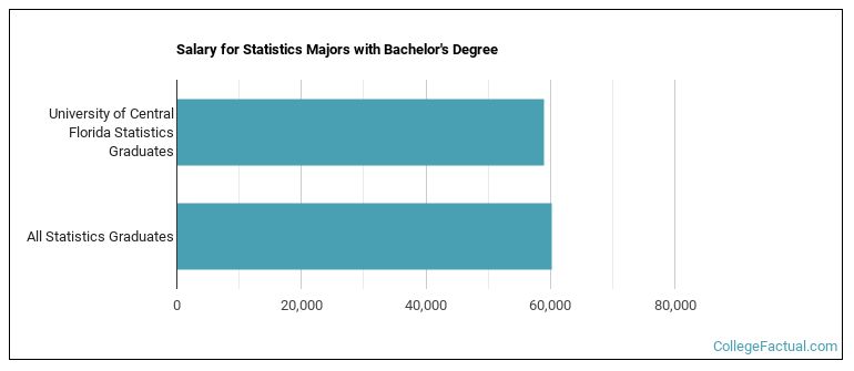 Stats majors who earn their bachelor's degree from UCF go on to jobs where they make a median salary of $58,920 a year. This is less than $60,216, which is the national median of all stats majors in the nation who earn bachelor's degrees.