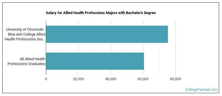 The median salary of allied health students who receive their bachelor's degree at UC Blue Ash College is $75,317. This is higher than $60,597, which is the national median for all allied health bachelor's degree recipients.