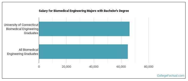The median salary of bio engineering students who receive their bachelor's degree at UCONN is $66,075. This is great news for graduates of the program, since this figure is higher than the national average of $64,853 for all bio engineering bachelor's degree recipients.