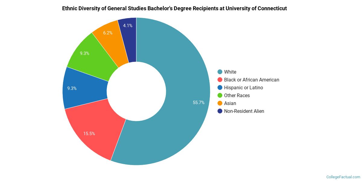 The following table and chart show the ethnic background for students who recently graduated from University of Connecticut with a bachelor's in general studies.