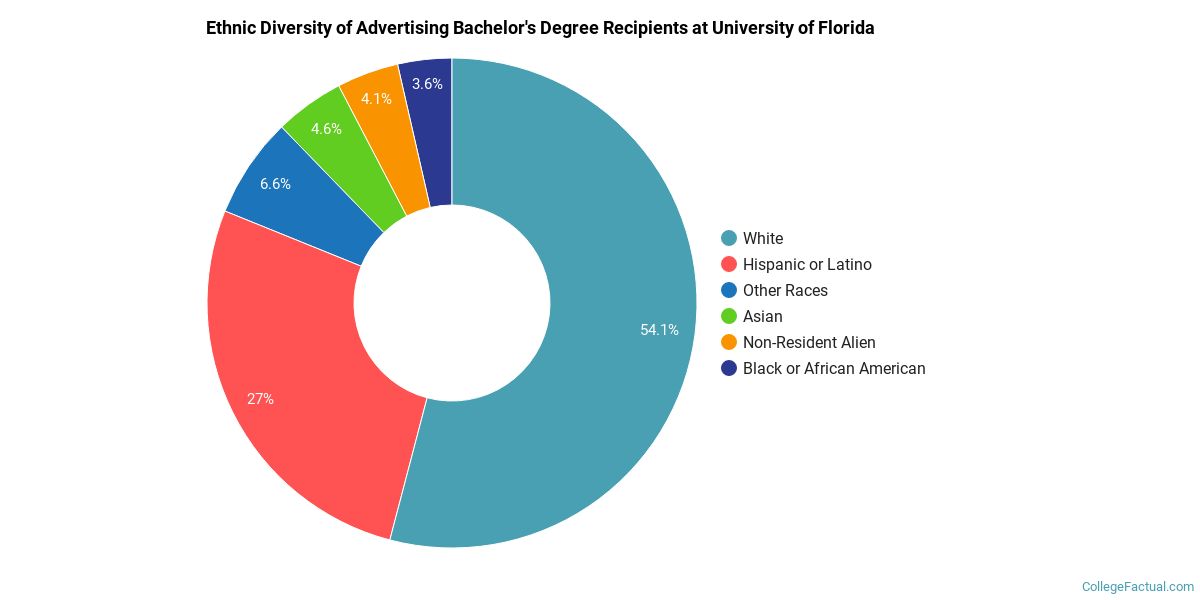During the 2020-2021 academic year, University of Florida handed out 196 bachelor's degrees in advertising. This is a decrease of 1% over the previous year when 198 degrees were handed out.