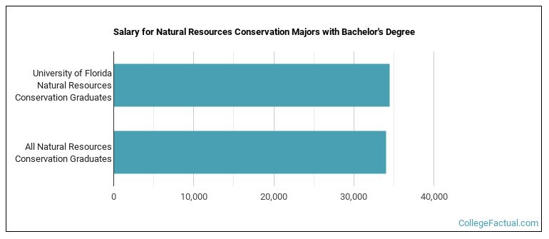 Conservation majors who earn their bachelor's degree from UF go on to jobs where they make a median salary of $34,454 a year. This is higher than $34,020, which is the national median for all conservation bachelor's degree recipients.
