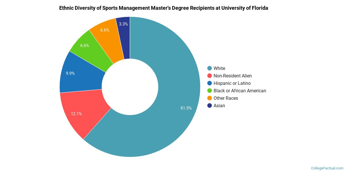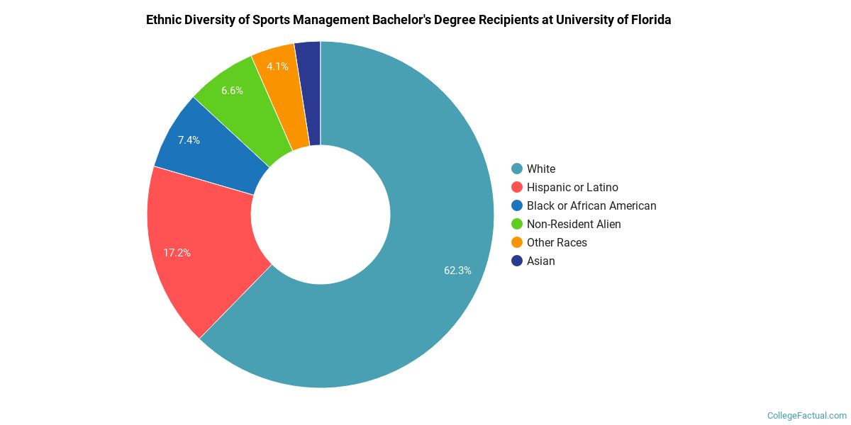 During the 2020-2021 academic year, 122 students graduated with a bachelor's degree in sports management from UF. About 65% were men and 35% were women.