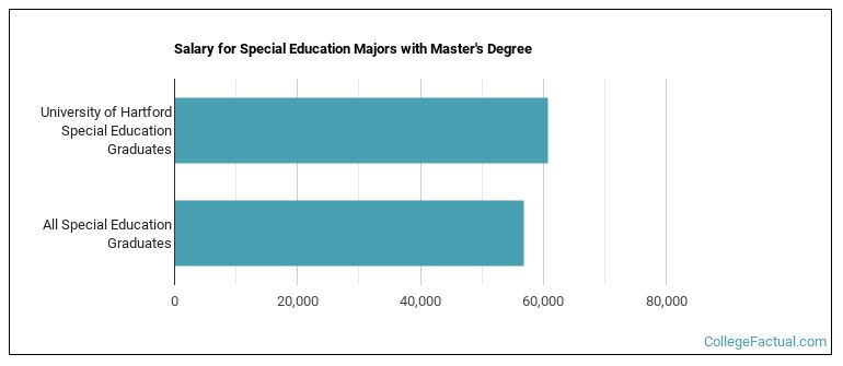 The median salary of special ed students who receive their bachelor's degree at UHart is $48,049. This is great news for graduates of the program, since this figure is higher than the national average of $44,139 for all special ed bachelor's degree recipients.