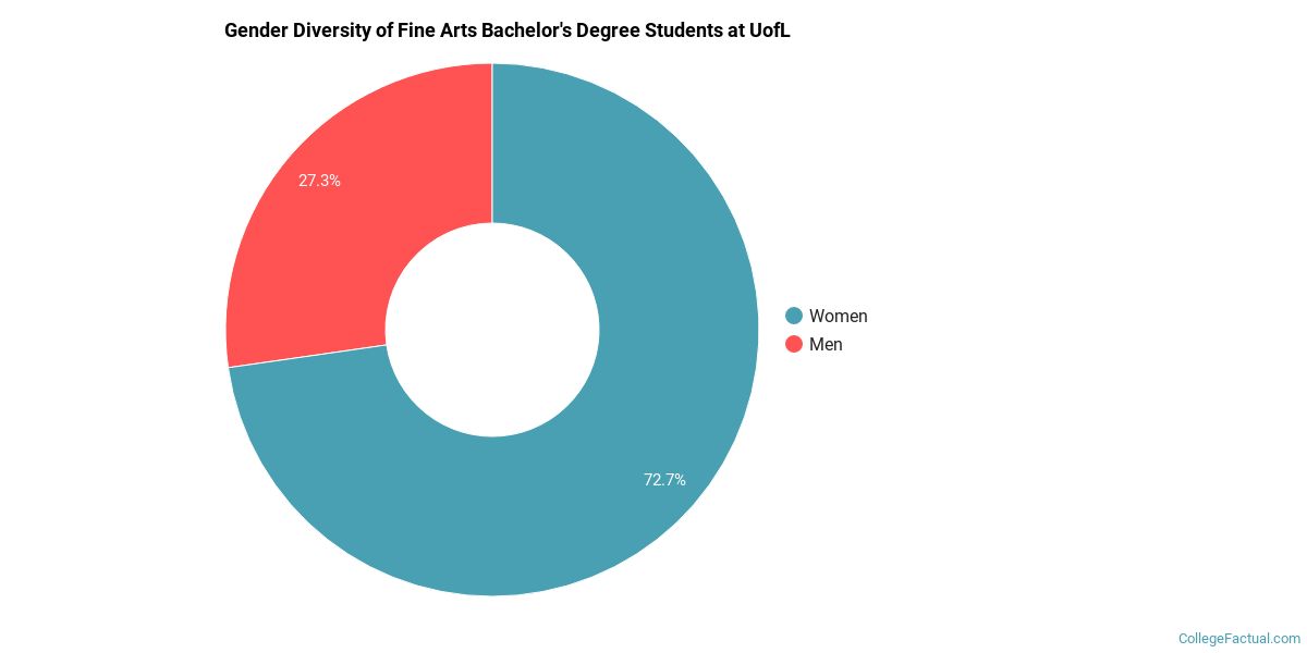 The fine arts program at UofL awarded 55 bachelor's degrees in 2020-2021. About 27% of these degrees went to men with the other 73% going to women.