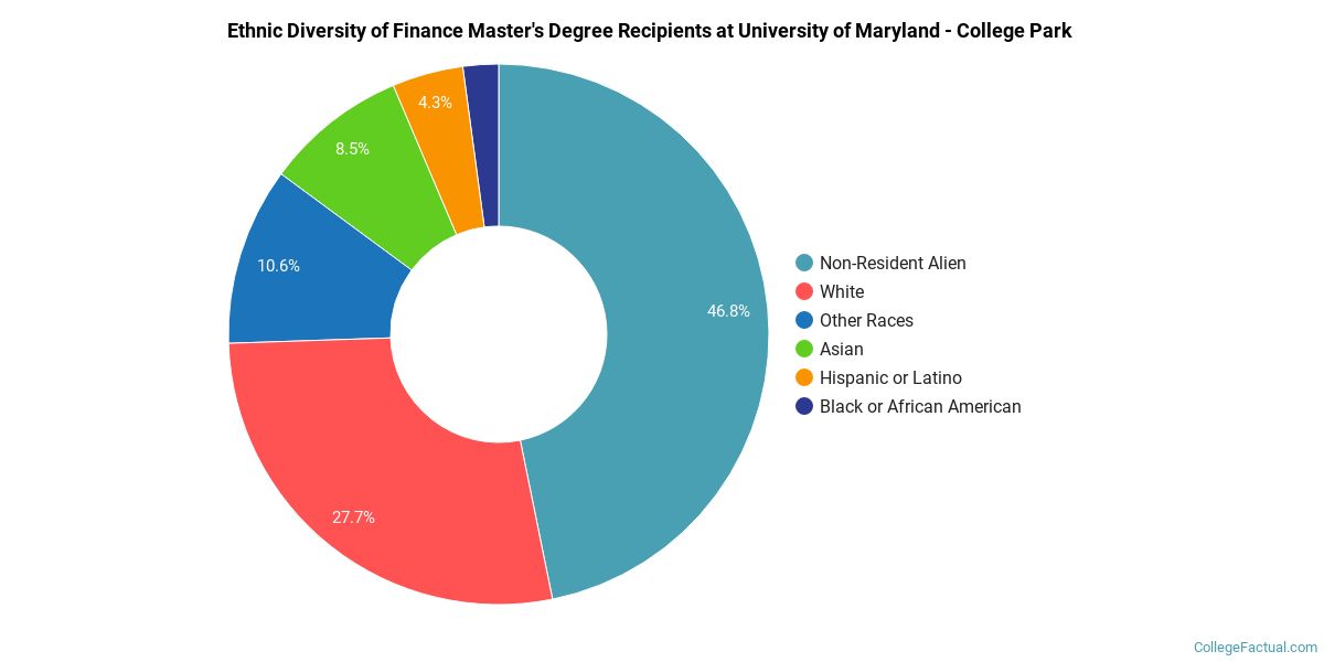 The following table and chart show the ethnic background for students who recently graduated from University of Maryland - College Park with a master's in finance.