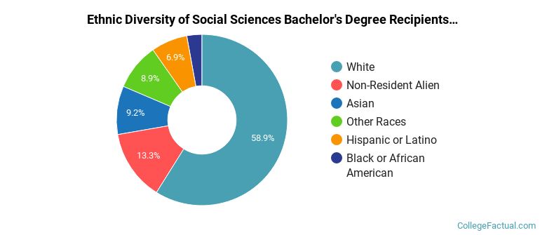 During the 2021-2022 academic year, 1,049 students graduated with a bachelor's degree in social sciences from U-M. About 56% were men and 44% were women.