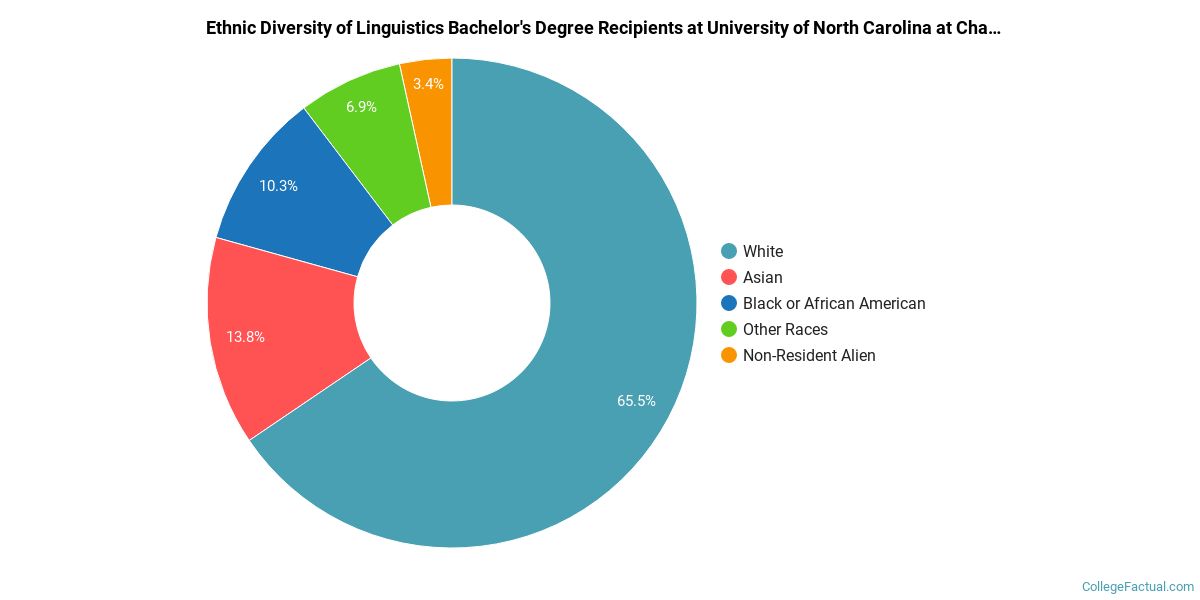 The following table and chart show the ethnic background for students who recently graduated from University of North Carolina at Chapel Hill with a bachelor's in linguistics.