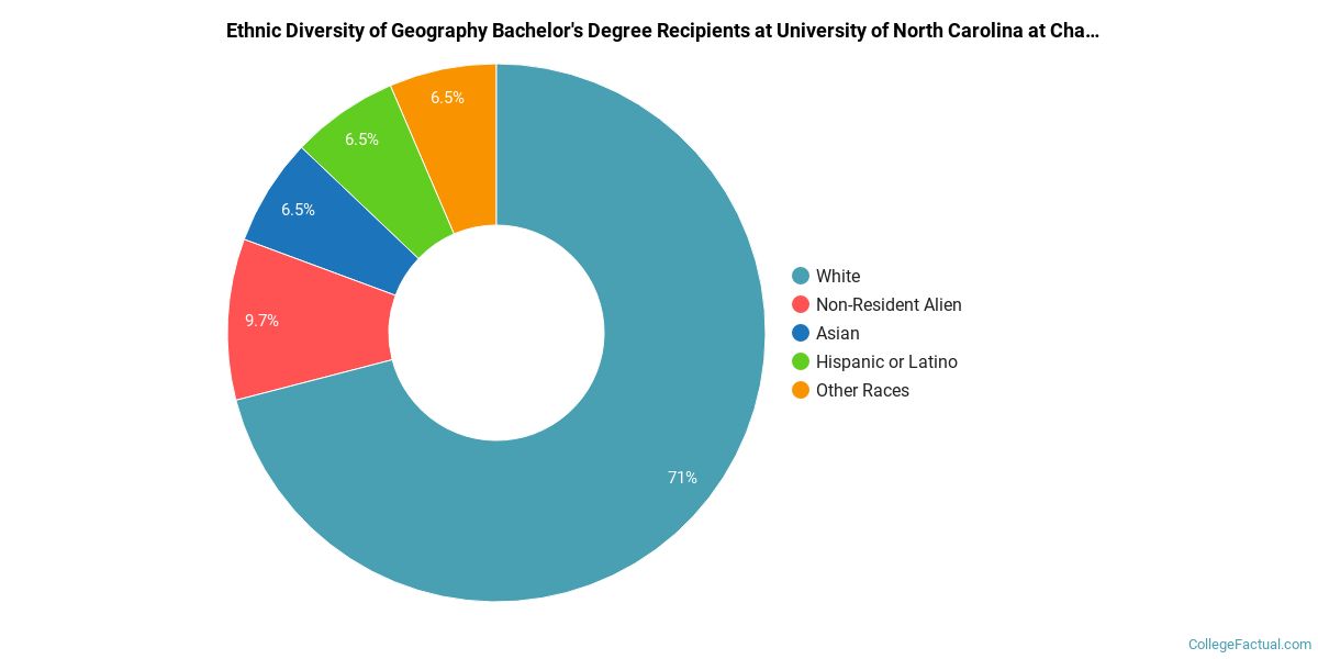 The following table and chart show the ethnic background for students who recently graduated from University of North Carolina at Chapel Hill with a bachelor's in geography.