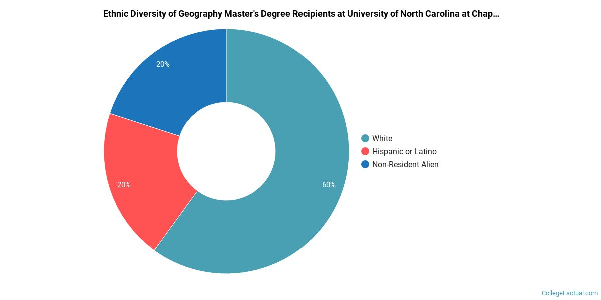 The following table and chart show the ethnic background for students who recently graduated from University of North Carolina at Chapel Hill with a master's in geography.