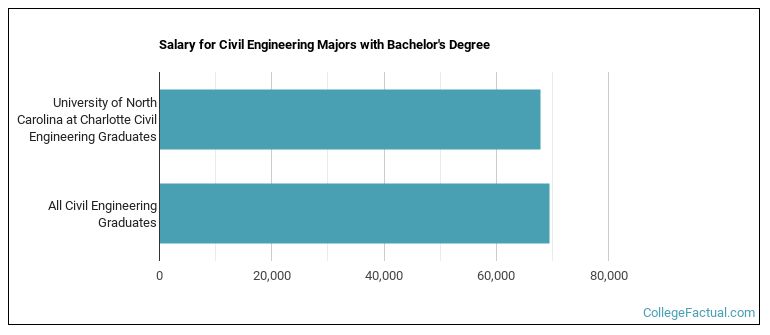 Civil Eng majors who earn their bachelor's degree from UNC Charlotte go on to jobs where they make a median salary of $67,934 a year. This is less than $69,566, which is the national median of all civil eng majors in the nation who earn bachelor's degrees.