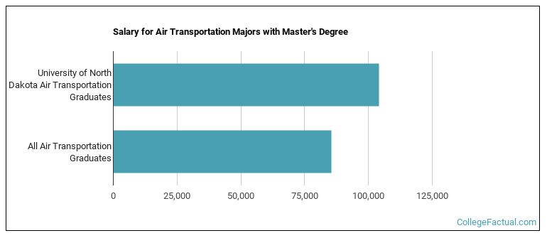 Air Transport majors graduating with a master's degree from UND make a median salary of $104,007 a year. This is a better than average outcome since the median salary for all air transport graduates with a master's is $85,493.