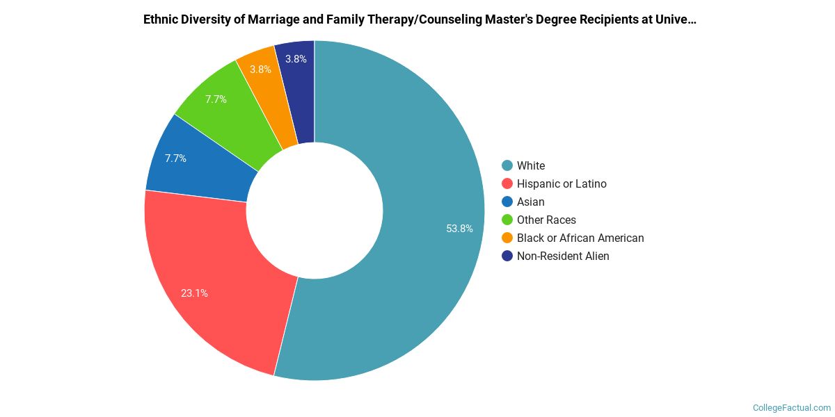Take a look at the following statistics related to the make-up of the marriage and family therapy/counseling majors at University of San Diego.