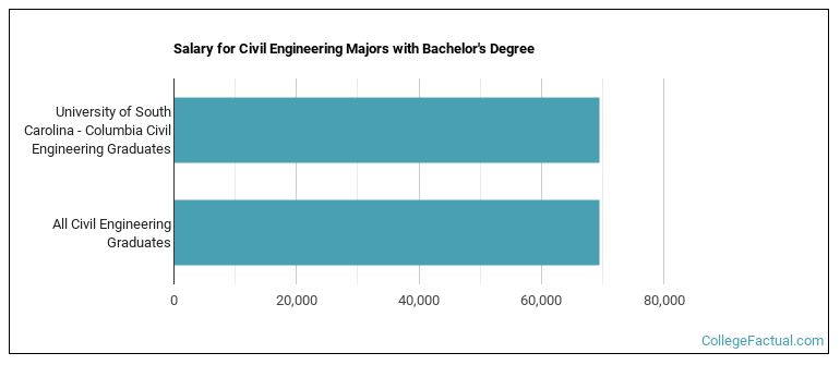 The median salary of civil eng students who receive their bachelor's degree at UofSC is $69,424. This is less than $69,566, which is the national median of all civil eng majors in the nation who earn bachelor's degrees.