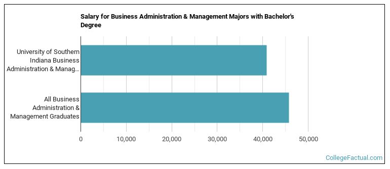 Business Administration majors who earn their bachelor's degree from USI go on to jobs where they make a median salary of $40,892 a year. This is less than $45,741, which is the national median of all business administration majors in the nation who earn bachelor's degrees.