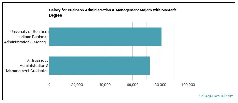 Business Administration majors graduating with a master's degree from USI make a median salary of $80,902 a year. This is a better than average outcome since the median salary for all business administration graduates with a master's is $72,329.