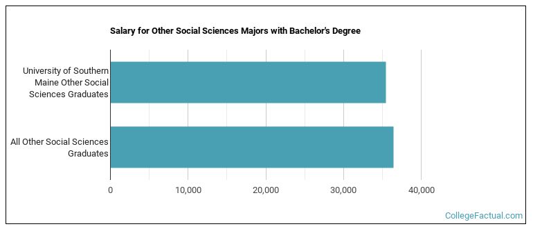 The median salary of other social sciences students who receive their bachelor's degree at University of Southern Maine is $35,418. This is less than $36,414, which is the national median of all other social sciences majors in the nation who earn bachelor's degrees.