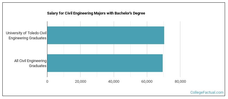 Civil Eng majors who earn their bachelor's degree from University of Toledo go on to jobs where they make a median salary of $70,388 a year. This is great news for graduates of the program, since this figure is higher than the national average of $69,566 for all civil eng bachelor's degree recipients.