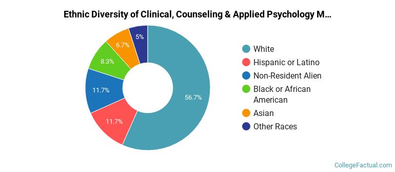 The following table and chart show the ethnic background for students who recently graduated from University of Virginia - Main Campus with a master's in clinical psychology.