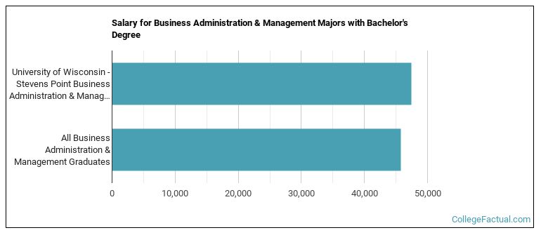 The median salary of business administration students who receive their bachelor's degree at UW - Stevens Point is $47,454. This is great news for graduates of the program, since this figure is higher than the national average of $45,741 for all business administration bachelor's degree recipients.