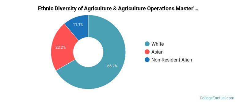 The following table and chart show the ethnic background for students who recently graduated from University of Wisconsin - Stout with a master's in agriculture & agriculture operations.