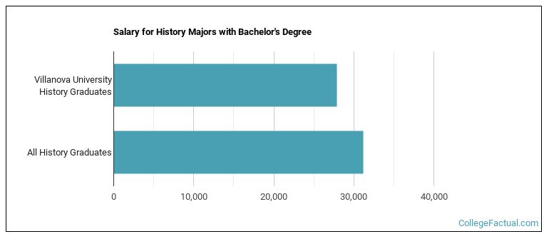 History majors who earn their bachelor's degree from Villanova go on to jobs where they make a median salary of $27,882 a year. Unfortunately, this is lower than the national average of $31,217 for all history students.