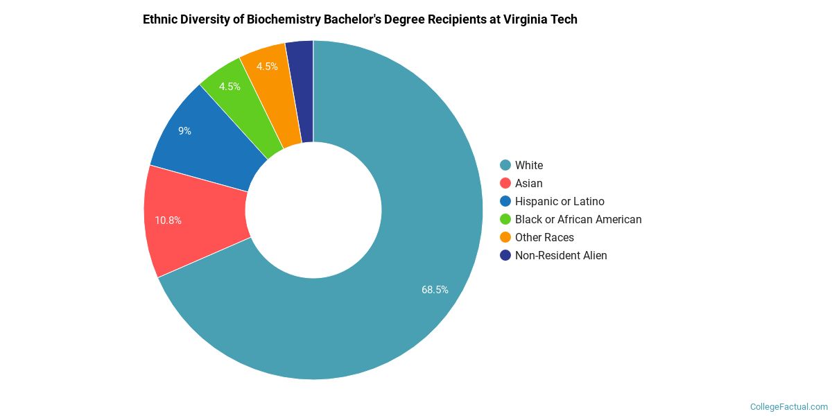 During the 2020-2021 academic year, 111 students graduated with a bachelor's degree in biological chemistry from Virginia Tech. About 44% were men and 56% were women.