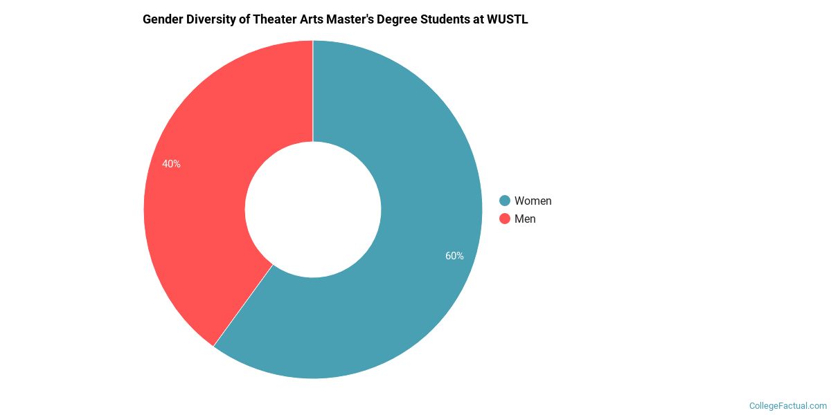 In the 2020-2021 academic year, 5 students earned a master's degree in theater from WUSTL. About 60% of these graduates were women and the other 40% were men.